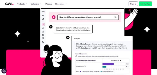 GWI Spark to narzędzie AI do badań rynku, które pozwala uzyskiwać insighty na podstawie danych pochodzących z profesjonalnie przeprowadzonych globalnych ankiet konsumenckich. Platforma oferuje intuicyjny interfejs czatu, w którym możesz zadawać pytania i otrzymywać wykresy, porównania segmentów oraz raporty dotyczące zachowań zakupowych. Z GWI Spark łatwiej zaplanujesz kampanie i zbudujesz strategie marketingowe oparte na faktycznych odpowiedziach konsumentów.