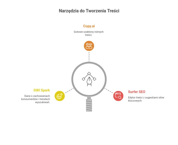 Najczęściej wykorzystuje się modele językowe, takie jak ChatGPT do tworzenia koncepcji i schematów treści, Claude do redakcji wymagających precyzji dokumentów oraz Gemini do analizowania danych i weryfikacji informacji. Wsparciem mogą być też narzędzia SEO i researchu, np. Surfer SEO, Copy.ai czy GWI Spark. Automatyzacja pozwala przyspieszyć proces tworzenia treści, zapewnić spójność językową i ułatwić planowanie dużych projektów contentowych. W połączeniu z redakcją i weryfikacją danych możesz zwiększyć skalę publikacji bez utraty jakości, jednocześnie odciążając zespół w powtarzalnych zadaniach. Czas zależy od długości treści i tego, na ile złożony jest dany temat. Prosta publikacja może powstać w kilka godzin, artykuł ekspercki - w ciągu 1-2 dni, włączając analizę konkurencji, tworzenie promptu, redakcję i optymalizację SEO. Podobnie jak w przypadku treści tworzonej przez człowieka, najważniejsze wskaźniki to widoczność w wyszukiwarkach i AI search, zaangażowanie użytkowników (czas na stronie, CTR, współczynnik odrzuceń) oraz konwersje (zapisy, sprzedaż, leady). Do najczęstszych błędów należą: pozostawienie typowych fraz AI („w dzisiejszym świecie”, „kluczowy element”), bierna forma zdań, powtarzalne struktury i brak konkretów. Ważne jest różnicowanie długości zdań, wprowadzanie anegdot, liczb i autorskiego komentarza oraz dostosowanie języka do odbiorcy. Każdą statystykę, nazwisko eksperta, case study czy funkcję produktu należy weryfikować w źródłach pierwotnych lub narzędziach takich jak Perplexity. Fragmenty tekstu warto porównywać z publikacjami branżowymi i oficjalnymi raportami, aby uniknąć nieścisłości i powielania nieprawdziwych informacji.Jakie narzędzia są najbardziej przydatne w AI copywritingu?