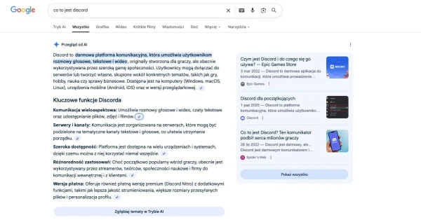 Wyniki wyszukiwania Google AI Overveiws.