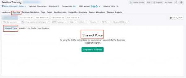 Share of Voice w narzędziu Semrush.