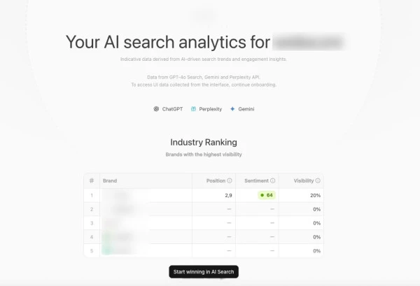 LLM Visibility Tracker to narzędzie do monitorowania widoczności marek w odpowiedziach generatywnych modeli językowych. Analizuje, jak często i w jakim kontekście treści danej firmy są cytowane przez systemy takie jak ChatGPT, Copilot, Perplexity czy Gemini. Umożliwia pomiar nowych wskaźników: Share of Voice, Response Position i Sentiment Score. Dzięki temu można ocenić skuteczność działań w ramach GEO i AEO, a także porównać swoją obecność z konkurencją.