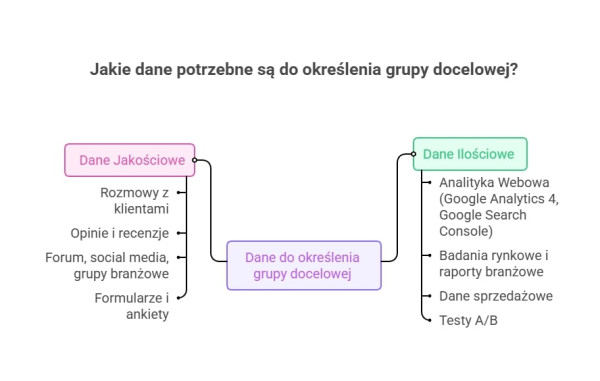 Żeby zdefiniować grupę docelową, potrzebujesz połączenia danych ilościowych: liczby i statystyki oraz danych jakościowych: opinie, cytaty, obserwacje. Są one podstawą budowy realistycznych profili klientów.