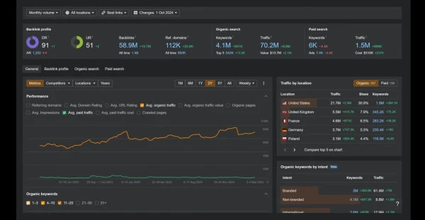 - Źródła ruchu konkurencji: Dowiesz się, jakie strony i źródła generują ruch do witryn Twoich rywali. Czy pochodzą z wyników organicznych, czy może z płatnych reklam? Ahrefs pozwala na dokładną analizę tych źródeł.