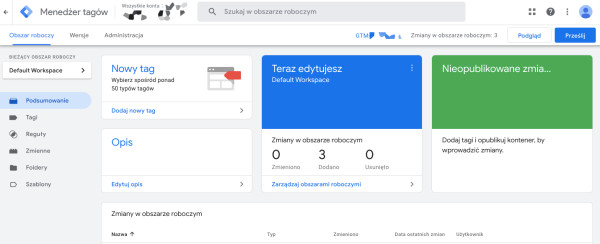 - Wejdź na stronę Google Tag Manager i zaloguj się do swojego konta.