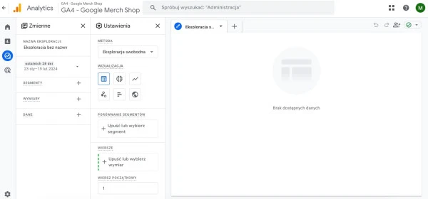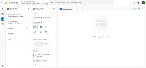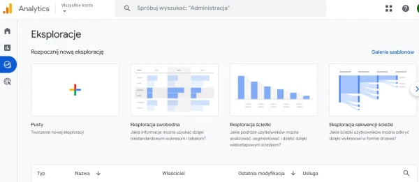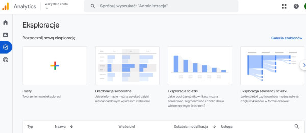 Sekcja eksploracji w narzędziu Google Analytics 4.