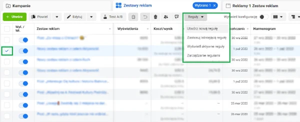 Jak utworzyć reguły automatyczne w Menedżerze reklam?