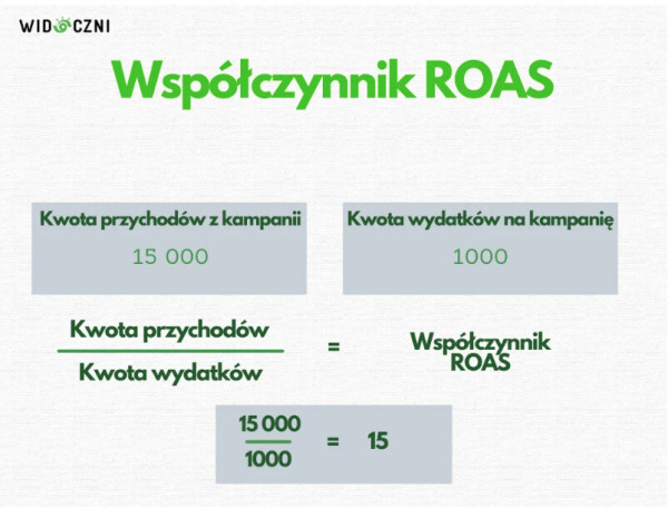 Wskaźnik ROAS to stosunek uzyskanych przychodów do wydatków reklamowych i jest zwykle wyrażany jako procent lub liczba całkowita. Na przykład, jeśli uzyskujesz 5000 zł przychodów z kampanii reklamowej, a wydajesz 1000 zł na reklamę, to ROAS wynosi 500%. Oznacza to, że każda wydana złotówka przynosi ci 5 złotych przychodów.