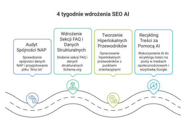 30-dniowy proces wdrożenia SEO AI w biznesie lokalnym.