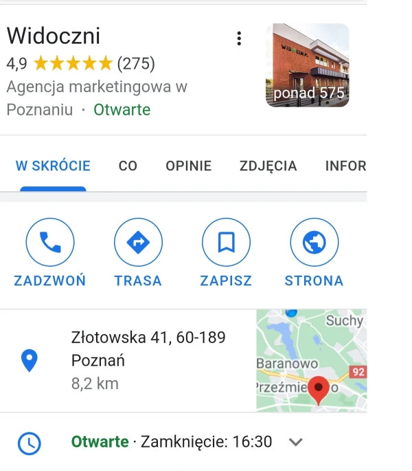 Wizytówka Google Moja Firma agencji Widoczni.