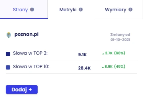 Dzięki bardzo efektywnej współpracy domena poznan.pl osiągnęła imponujące wyniki w wyszukiwarce Google. Od rozpoczęcia współpracy 1 października 2021 roku liczba fraz kluczowych na topowych pozycjach znacząco wzrosła. Dzięki skutecznej strategii SEO udało się osiągnąć imponujące wyniki: