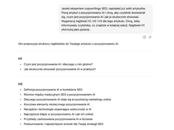 Nagłówki H1, H2 i H3 wygenerowane przez ChatGPT