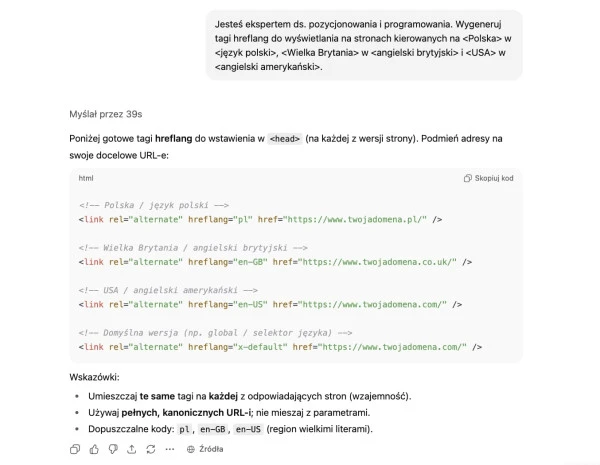 Tagi hreflang utworzone przez ChatGPT