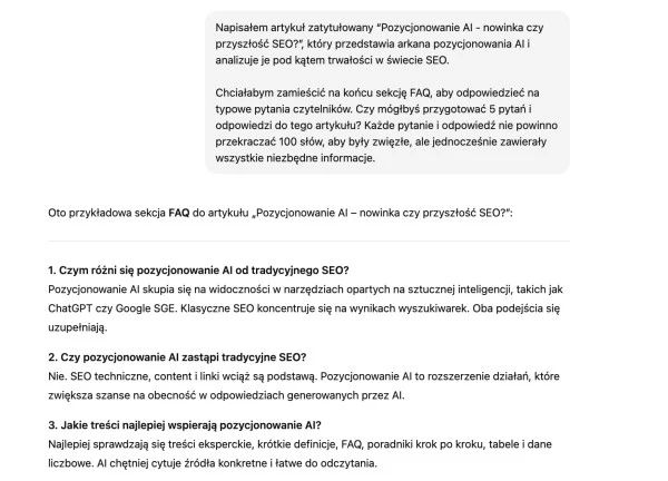 Oto przykładowy prompt do generowania sekcji FAQ: