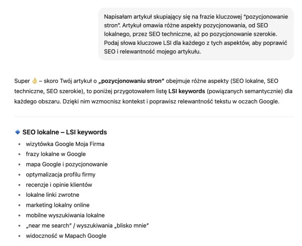 Słowa kluczowe LSI wygenerowane przez ChatGPT