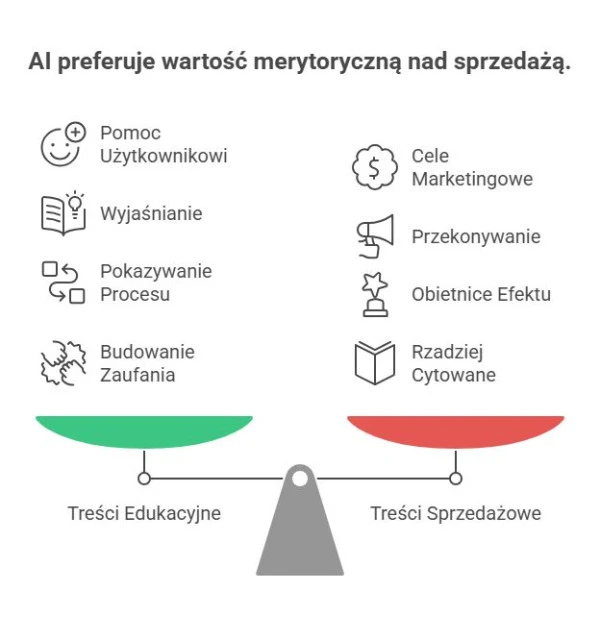- Budować autorytet i wiarygodność - AI wybiera źródła, które są uznawane za rzetelne i eksperckie