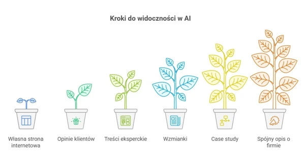 Im częściej Twoja firma pojawia się w internecie, tym lepiej. Zadbaj o obecność w katalogach firm, forach tematycznych, mediach społecznościowych, artykułach sponsorowanych. Każda taka wzmianka to sygnał dla Google i AI, że firma działa i warto ją polecić.