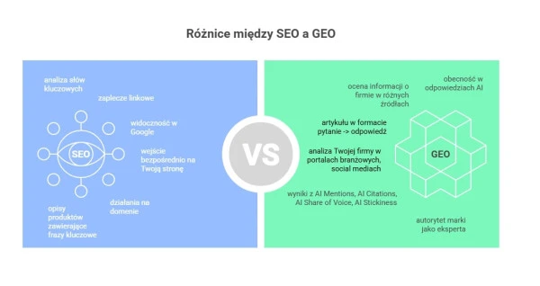 - czym GEO różni się od klasycznego SEO i jak te dwa obszary się uzupełniają,