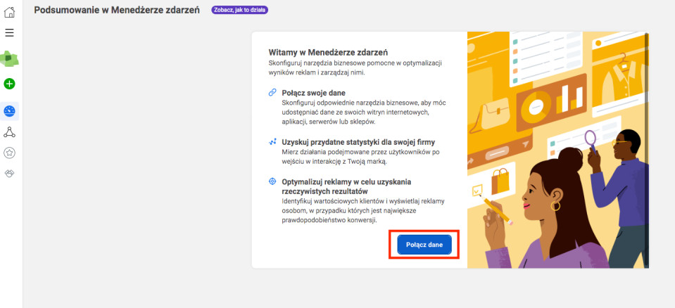 W Menedżerze Zdarzeń przejdź do podglądu danych i sprawdź, czy zdarzenia są rejestrowane regularnie. Zwróć uwagę, czy widoczne są zarówno zdarzenia z przeglądarki, jak i dane przesyłane przez Conversions API, jeśli korzystasz z tego rozwiązania.