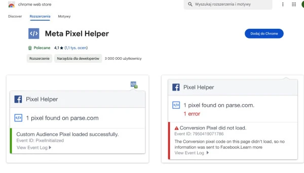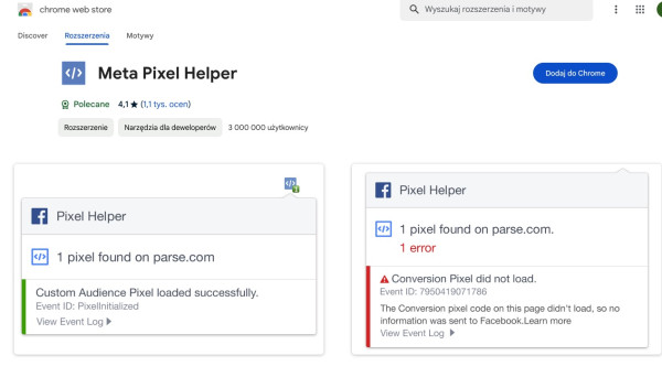 Wtyczka Google Chrome Meta Pixel Helper
