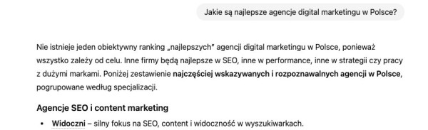 W generatywnych odpowiedziach źródło informacji nie musi być powiązane z konkretną domeną ani nawet z jednym tekstem. Wzmianka o marce może funkcjonować jako element wiedzy zbiorowej, przykład rozwiązania lub naturalny punkt odniesienia w danym obszarze i może to robić bez linku.