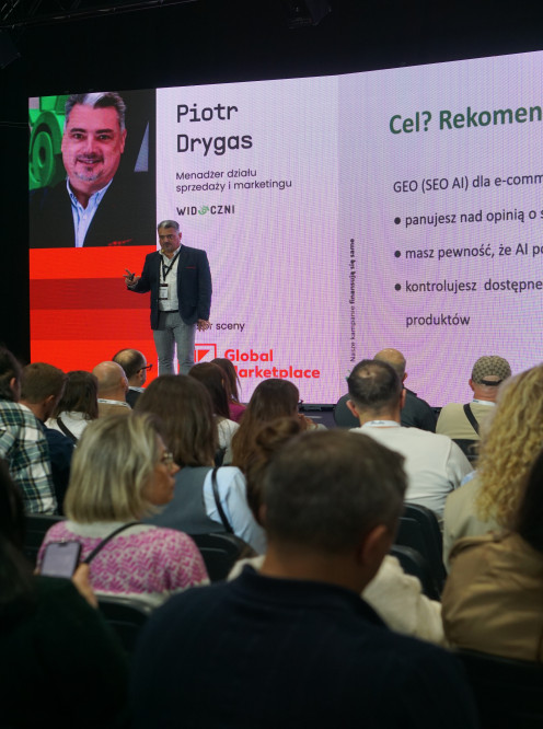 Kolejki uczestników, którzy chcieli porozmawiać o SEO, marketingu i sztucznej inteligencji w e-commerce, nie malały przez cały dzień. To właśnie tu można było spotkać Paulinę, Ewelinę i Grzegorza - zespół Widocznych, który z pełnym zaangażowaniem rozmawiał z uczestnikami, prowadził konsultacje i dzielił się wiedzą o skutecznym marketingu internetowym.