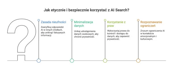 Aby korzystać z AI Search etycznie i bezpiecznie, warto trzymać się kilku prostych, ale ważnych zasad: