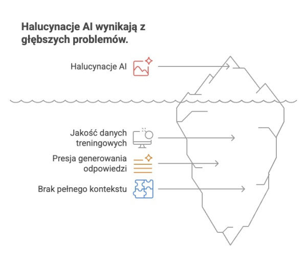 - Po trzecie - brak pełnego kontekstu. Jeśli pytanie jest nieprecyzyjne, AI musi zgadywać, co użytkownik miał na myśli. I właśnie wtedy rodzą się halucynacje.