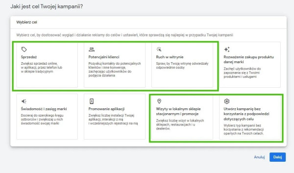 Wybór rodzajów kampanii w zależności od celów biznesowych