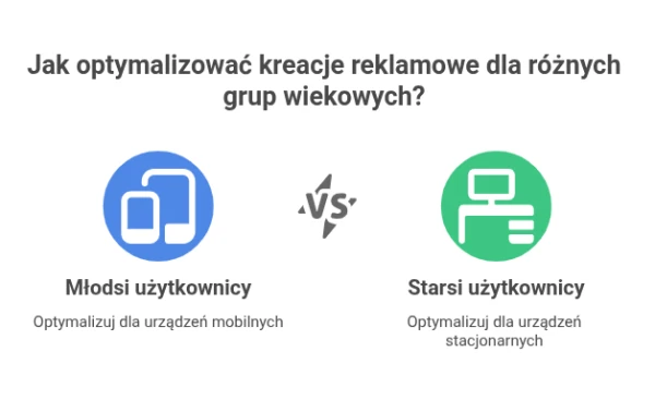 Segmentację przekazu lepiej jednak opierać na danych behawioralnych i kontekstowych z GA4 i Google Ads, np. urządzenie, lokalizacja, nowi vs powracający użytkownicy, poziom zaangażowania, odwiedzone podstrony oraz listy odbiorców. Takie kryteria możesz testować w kampaniach i oceniać wpływ na kluczowe zdarzenia oraz koszt pozyskania.