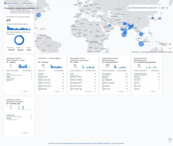 Jak użyć Google Analytics 4 do analizy odbiorców? Narzędzie oferuje szeroki zakres danych na temat użytkowników i ich zachowań oraz interakcji na stronie. Informacje tego typu obejmują: