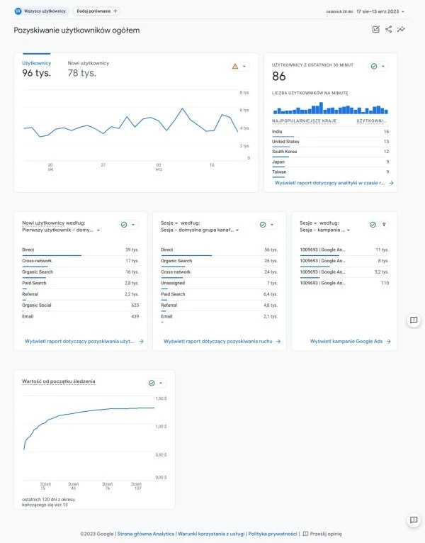 Raport Pozyskiwanie użytkowników ogółem w GA4