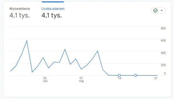 - Liczba zdarzeń, czyli ile razy użytkownicy wywołali dane zdarzenie.