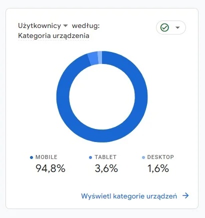 Kategoria urządzenia pozwala również ocenić, czy Twoja witryna jest przyjazna dla użytkowników korzystających z różnych typów urządzeń i podjąć kroki do zapewnienia im pozytywnego doświadczenia ze stroną. Dowiedz się, jak zoptymalizować stronę pod kątem użytkowników mobilnych.
