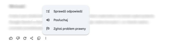 - Gemini pozwala na szybkie sprawdzenie odpowiedzi w wyszukiwarce Google.