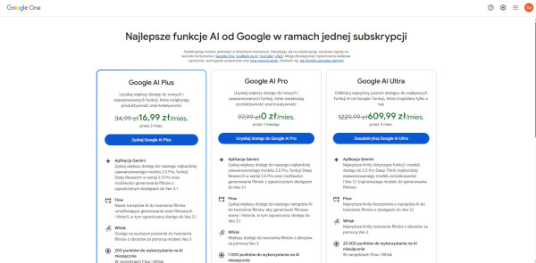 - Wykorzystanie pełnych możliwości modelu Ultra, takich jak “Deep research” oraz “Deep Think” dostępne jedynie w droższych pakietach.
