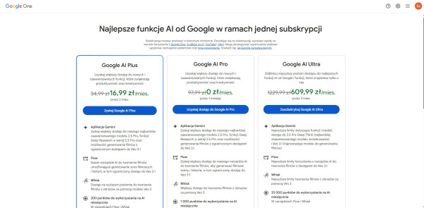 - Wykorzystanie pełnych możliwości modelu Ultra, takich jak “Deep research” oraz “Deep Think” dostępne jedynie w droższych pakietach.