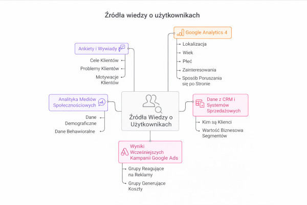 - zacznij od danych w: GA4, CRM, wcześniejszych kampaniach, social media, ankiet,