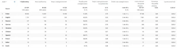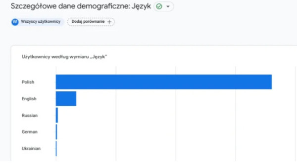 Język użytkowników może przekazać Ci ważne informacje, które warto wykorzystać w strategii marketingowej. Jeśli na Twoją stronę trafia dużo użytkowników mówiących w innym języku, być może opłaca się stworzyć dla nich odrębną witrynę w tej wersji językowej i zainwestować w ofertę usług na danym obszarze językowym. Język ma także znaczenie dla tworzenia treści i stylu komunikacji - jeśli prowadzisz działania na rynek zagraniczny i większość odbiorców posługuje się brytyjską odmianą języka angielskiego, stosuj słownictwo charakterystyczne dla brytyjskiej odmiany angielskiego.