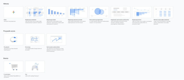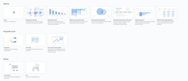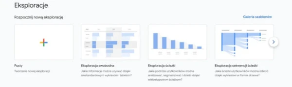 Eksploracje w Google Analytics 4 wraz z galerią szablonów.