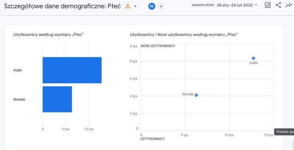 Dane o płci użytkowników w Google Analytics 4.