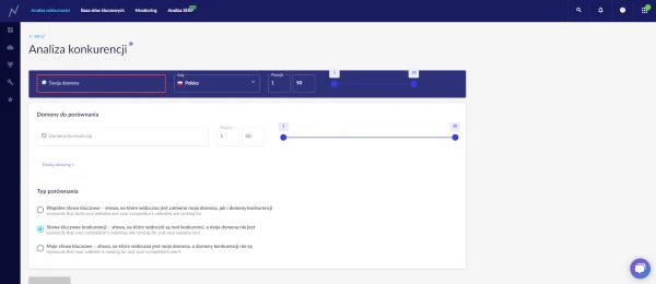 Widok narzędzia “Analiza konkurencji w Senuto”.