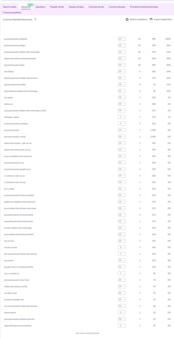 Narzędzie Senuto przeznaczone jest przede wszystkim do analizy widoczności, jednak specjalny moduł dotyczący analizy konkurencji pozwoli Ci sprawdzić, jakie słowa kluczowe w pozycjonowaniu wybierają firmy z Twojej branży. To dobre narzędzie do wsparcia działań, które mają na celu ustalić, jak badać zachowania użytkowników na stronie. Wystarczy, że przejdziesz do zakładki Narzędzia oraz do raportu “Analiza konkurencji”. Z jego pomocą będziesz mógł sprawdzić, na jakie słowa kluczowe Twoja konkurencja buduje swoją widoczność.