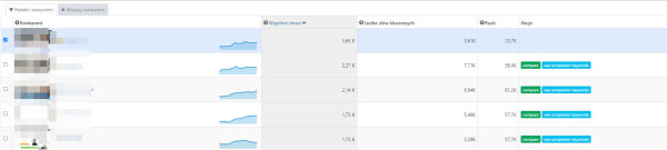 Zestawie konkurentów branżowych w narzędziu Semstrom