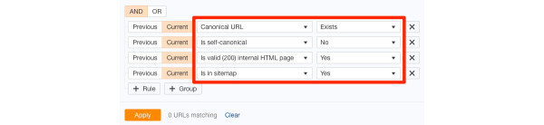 Poprzez tag canonical wskazujesz Googlebotom jedną, preferowaną wersję przeznaczoną do indeksowania. Może się zdarzyć, że strona, która ma być kanoniczna, wskazuje inną, alternatywną wersję kanoniczną, która nie istnieje. To wprowadza roboty Google w błąd i może wpłynąć na problemy z indeksowaniem. Jeśli chcesz sprawdzić, czy na Twojej stronie występuje taki błąd, skorzystaj z raportu Page Explorer w Ahrefs i przefiltruj wyniki w następujący sposób:
