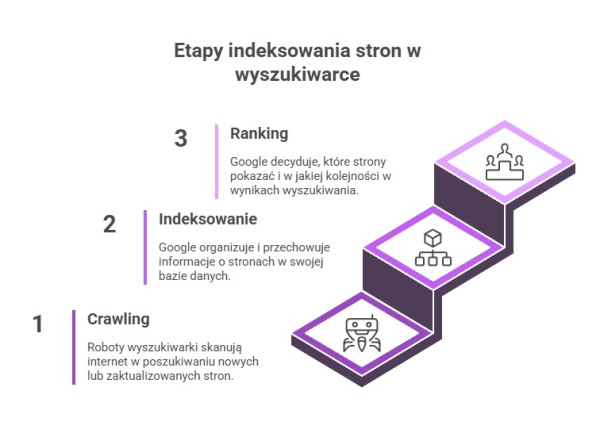 Następnie następuje indeksowanie, czyli moment, w którym Google zaczyna porządkować i zapisywać znalezione informacje o Twojej stronie w swojej ogromnej bazie danych, zwanej indeksem. Gdy Google już przeanalizuje Twoją stronę, zapisuje wszystko, co ważne. Indeksacja strony internetowej oznacza, że Google „zapamiętuje” zawartość witryny, jej strukturę, treści, a także relacje między podstronami. Dopiero kiedy strona jest w indeksie, może być wyświetlana w wynikach wyszukiwania.
