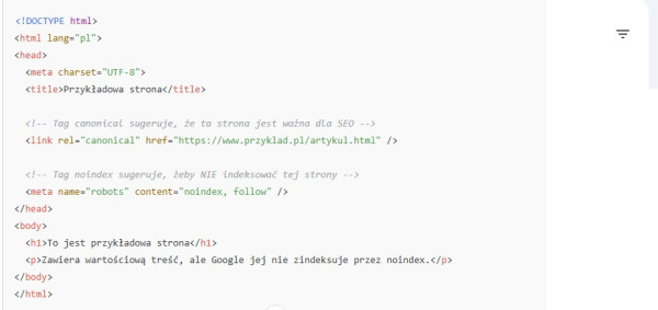 Tag Canonical i tag Meta Robots noindex pełnią różne funkcje, ale stosowane razem na tej samej stronie mogą generować sprzeczne sygnały dla Google. Canonical to taki dyskretny znak dla Google, informujący, że to ta wersja strony jest tą właściwą i powinien skupić się na niej. Canonical mówi: „To ważna wersja, indeksuj ją”, noindex mówi: „Tego nie pokazuj”. Dajesz w ten sposób dwa przeciwne sygnały. Google może się pogubić i zignorować oba. A Twoja strona straci pozycję.