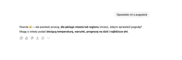 Model potrzebuje wskazówek, które ograniczą pole interpretacji. Zbyt ogólny prompt prowadzi do odpowiedzi powierzchownej: AI nie wie, czy użytkownik oczekuje danych, opinii, czy rekomendacji. Kiedy kontekst jest jasno określony („Porównaj dwa modele laptopów pod kątem mobilności i czasu pracy na baterii”), odpowiedź staje się logiczniejsza, a argumenty - spójne z intencją pytania.