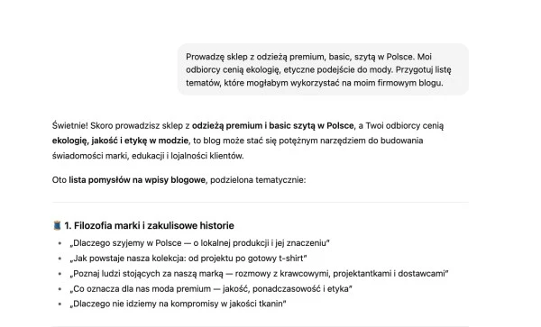 Przykładowy prompt w ChatGPT.