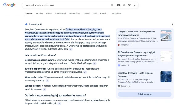 Efekty tej zmiany widać już w samej strukturze wyników wyszukiwania. Google i inne systemy oparte na AI zaczęły prezentować informacje w sposób bardziej kontekstowy i zorganizowany - w formach, które nie przypominają klasycznych list linków.