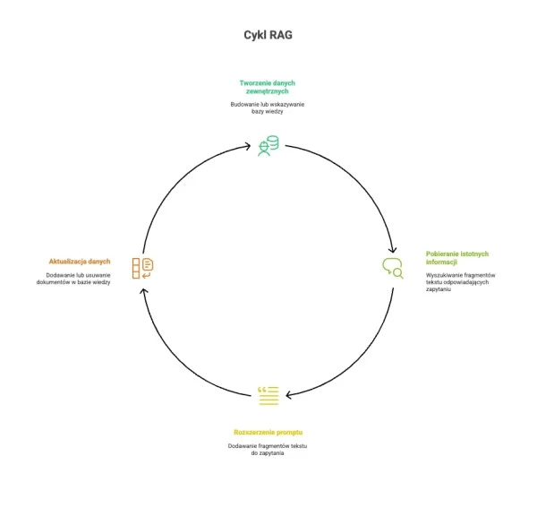 Cykl Retrieval-Augmented Generation.